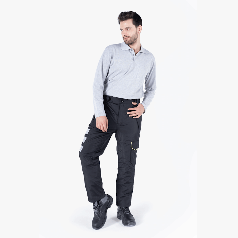 Cırtlı ve esnek bel kemeri, cırt kapaklı yan cepler, %100 poly. 200 gr bondit kumaş,120 ge kapitone dolgulu, solda çok bölmeli asma aparatı